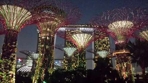 A couple times every evening, even the botanical gardens come to life. The canopies light up and dance to music played throughout the garden. We were lucky to be walking through the center of the garden at the perfect time to enjoy this experience!