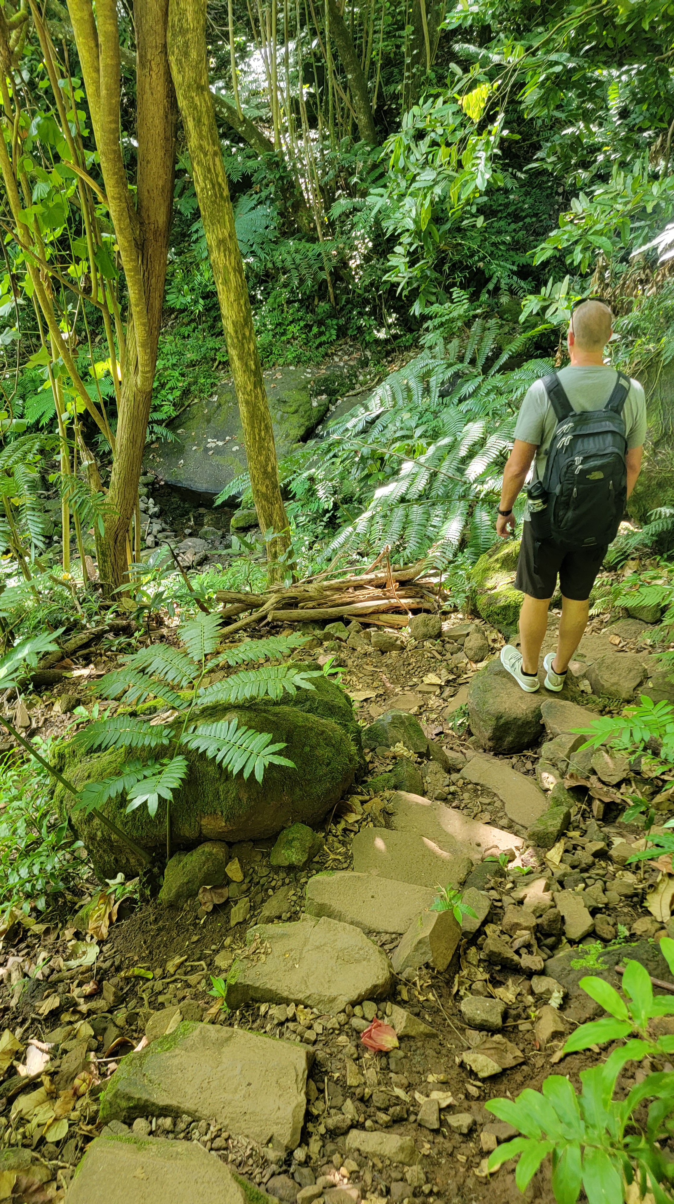 It didn’t deter us from trekking down, then up, enduring several switchbacks along this trail through a lush rainforest in the center of the island. Incredibly beautiful!