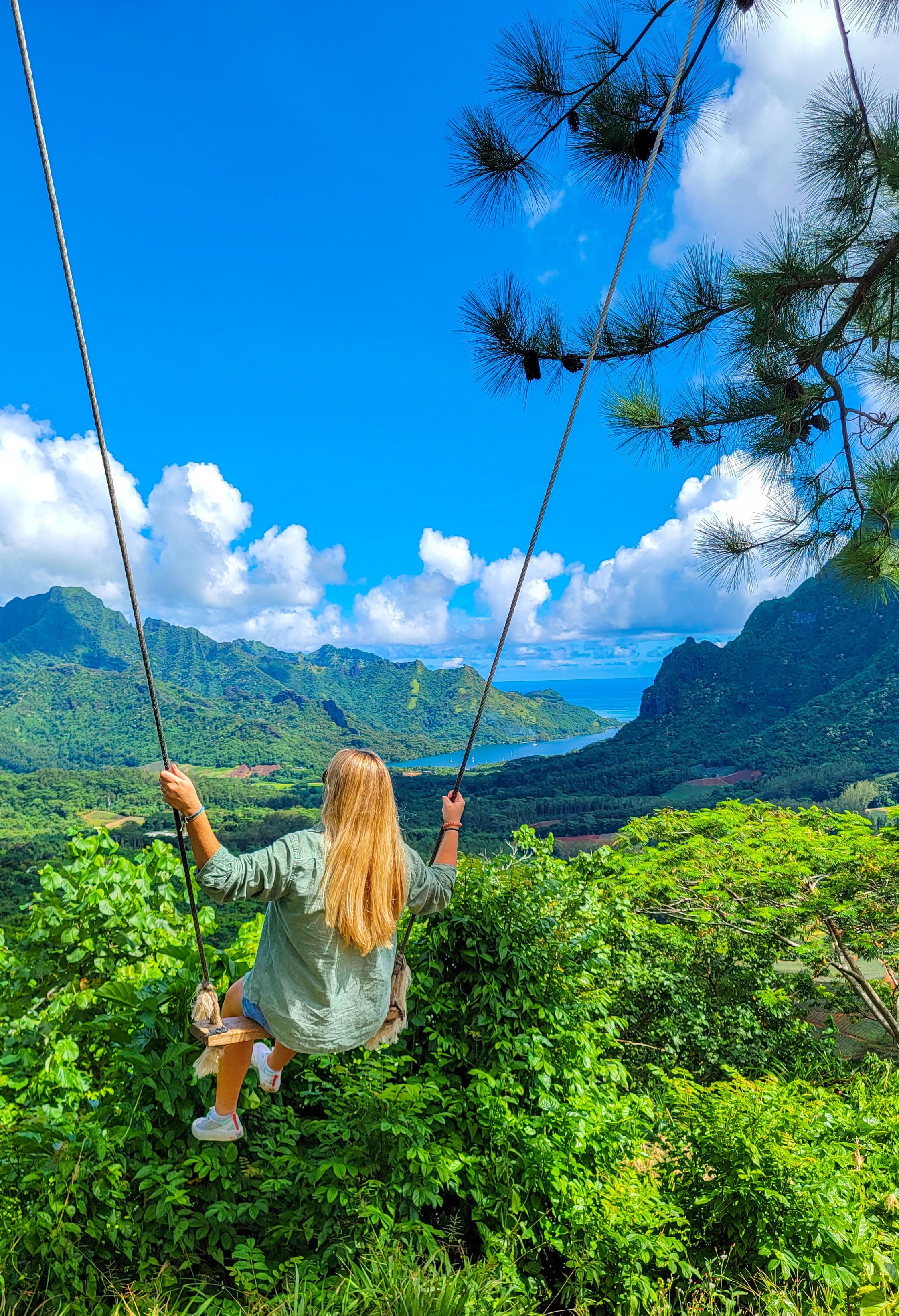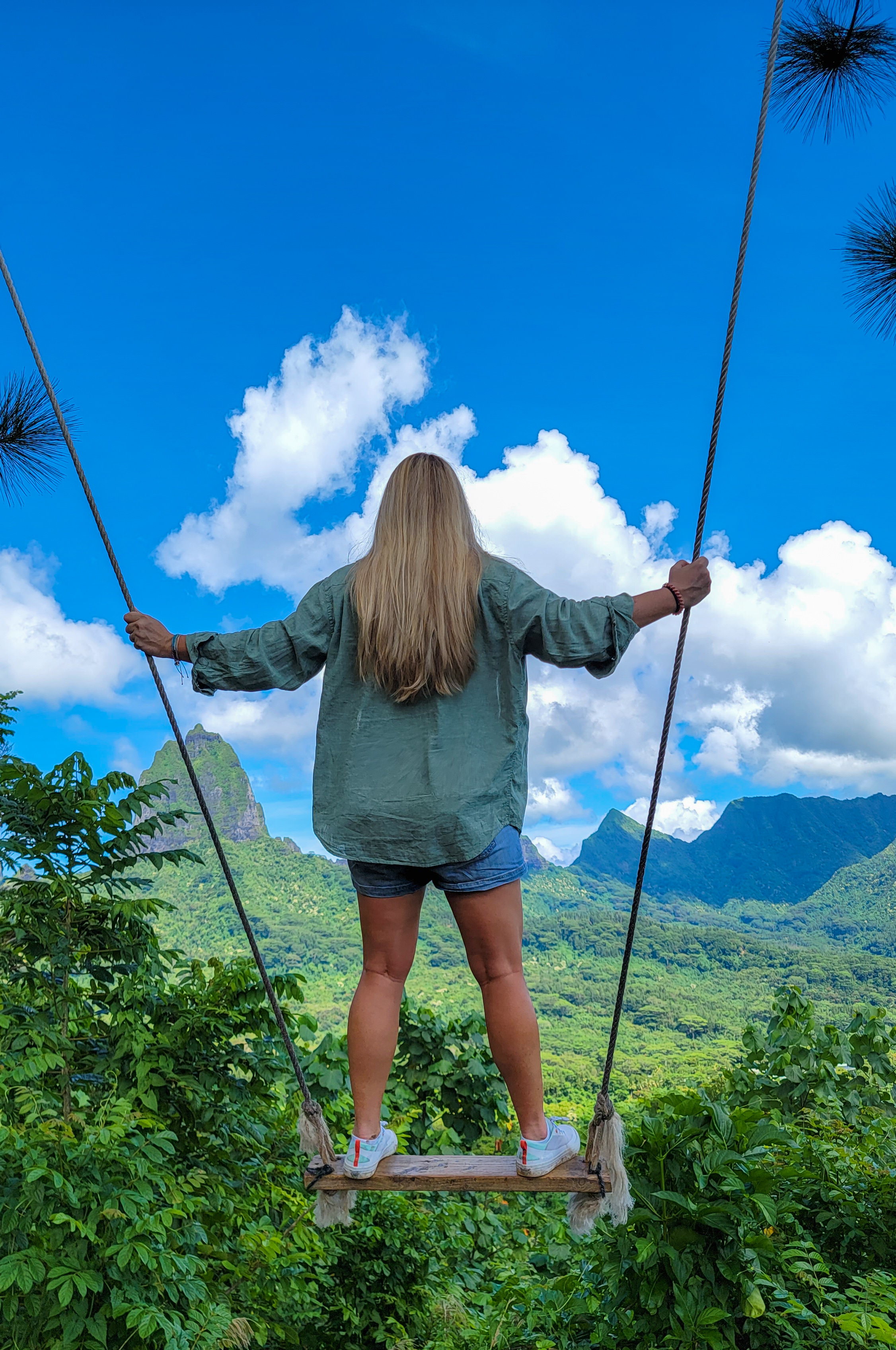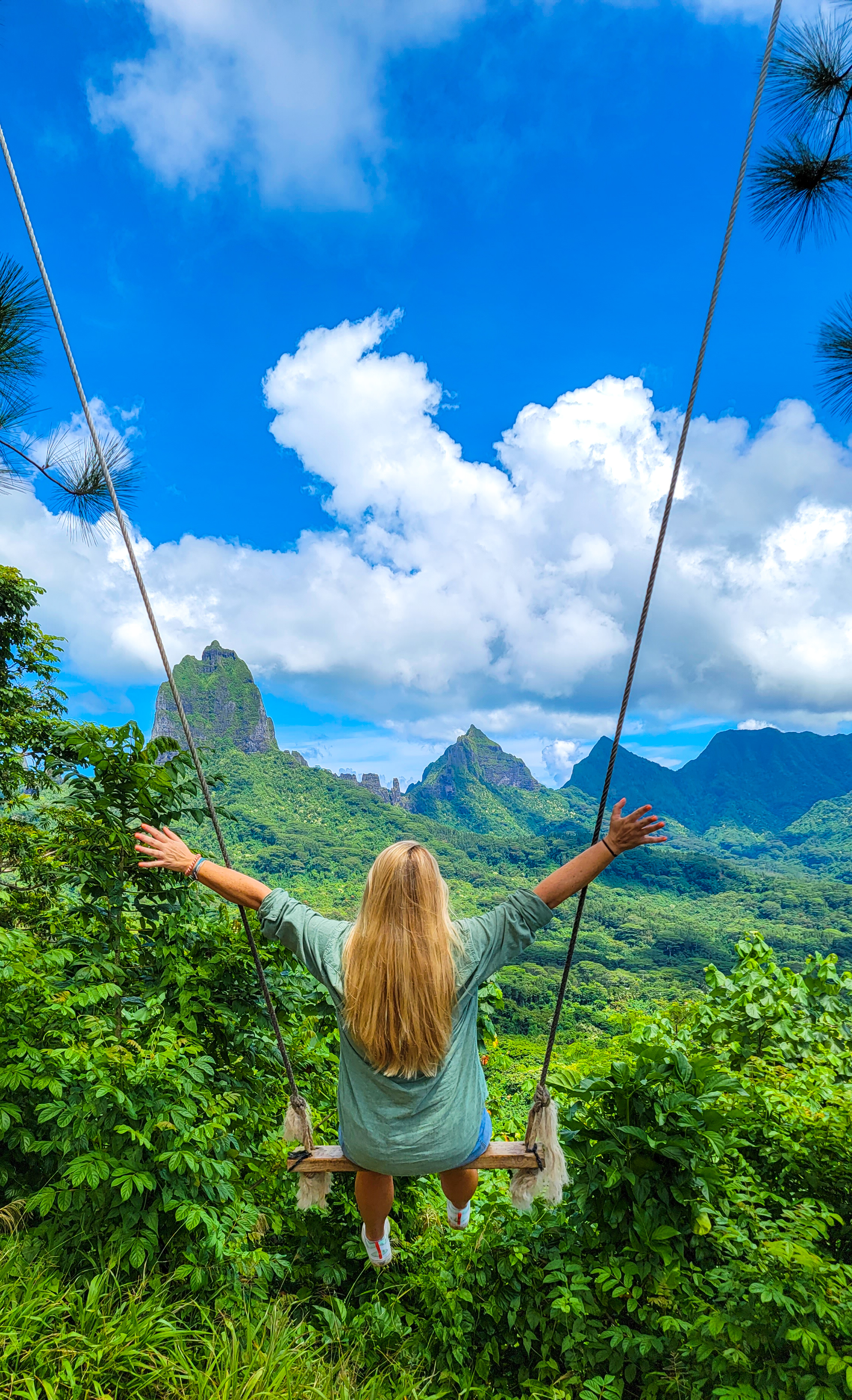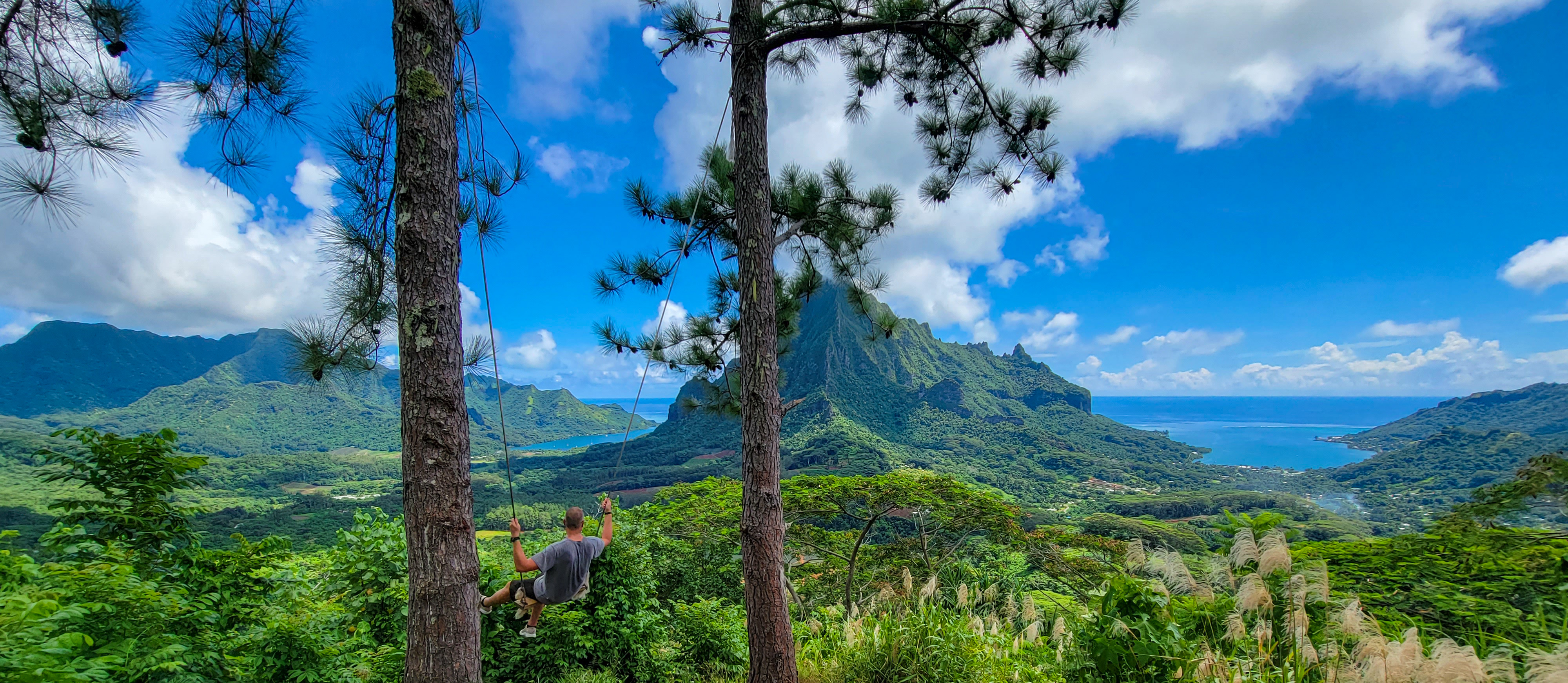 As we navigated through a sweaty trek, we were thrilled to get to the what has to be one of the world’s coolest swings! This epic swing provides incredible views overlooking Cook’s Bay and Opunohu Bay.