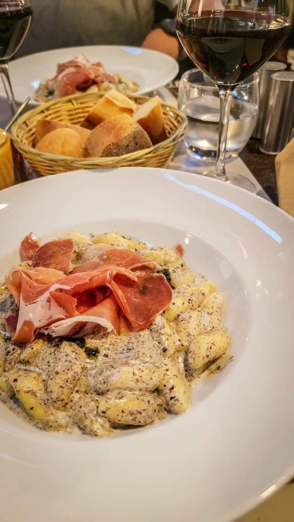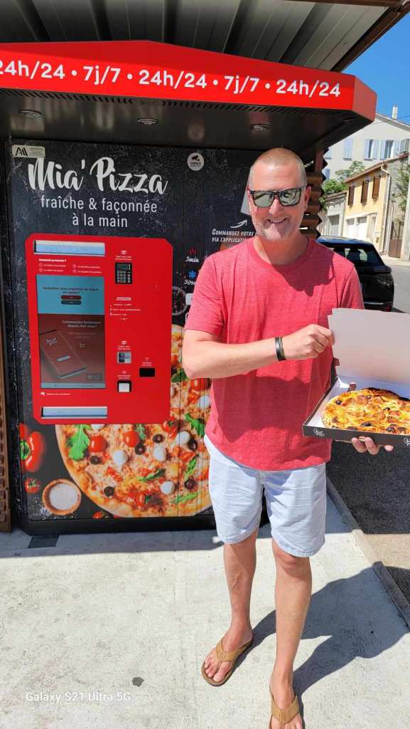But first, before we leave Valensone, we have to try out this pizza vending machine that is only a few steps from our Airbnb and has been staring at us for days 🤣. Legit, you tap what kind of pizza you want, and it cooks it inside the machine, and like magic, a pizza pops out the bottom. So, pizza for breakfast it is!