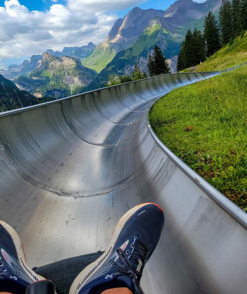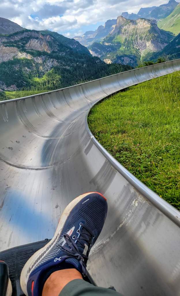 But first, we jump off the gondola and head straight for the alpine slide. We did this slide a few years ago, and we couldn’t wait to do it again. Fun, fast, and the setting is impeccable.