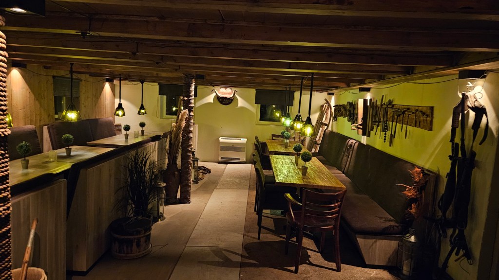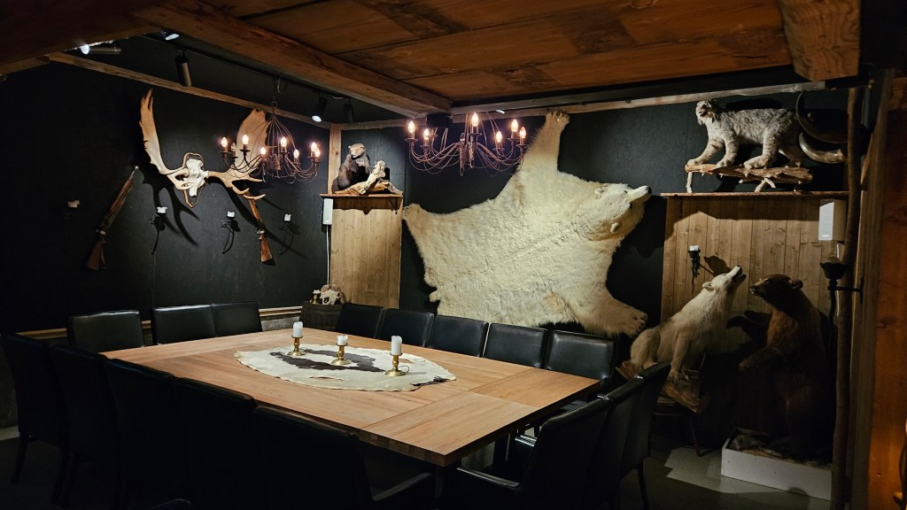 One bonus, we met the owner of the hobbit houses, and he showed us around his beautiful property overlooking Balsfjord. Beyond the common area where the bathrooms and shower are, is a door that opens to a bar and entertaining space that his family has renovated over the years. Kind of blown away when he opened the door to show us such a cool space!