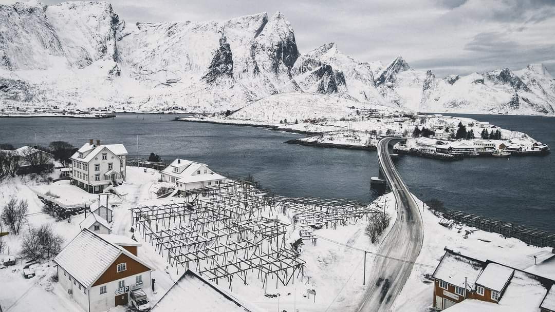 The Lofoten fishery is considered the richest in the world. The gulf stream meeting the coast of Norway creates the perfect conditions for the Norwegian Arctic Cod to swim down from the Barents Sea to spawn on the mainland side of the Lofoten archipelago beginning in January. Fish racks line the small fishing villages, as the fish is hung out to dry in the perfect temperature conditions into late spring. This has been going on for nearly 1,000 years and is the backbone to Norway’s leading export.
