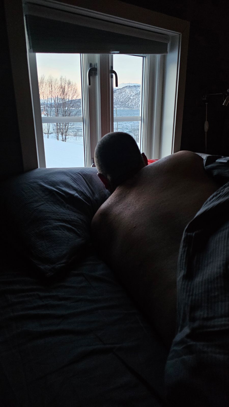 Problem with option 2 (which we opted for)… it’s a 3 hour drive north, but the positive, it’s the only area in the region that presents with the chance of clear skies. Long, dark drive to a small town on the fjord just south of Tromso. Pizza stop at an army town Bardufoss, grab some to go food, and persevere through to what seems like the top of Earth.